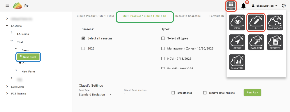 Multi Product Rx can be used to create single or multi-product prescriptions for one field at a time. The 'Multi Product Rx' button in the Right-Click Menu in View and the 'Multi Product/Single Field+ST' tab in the Rx tool are the same application in different locations. Follow the steps in the video or article below to learn how to use this tool.