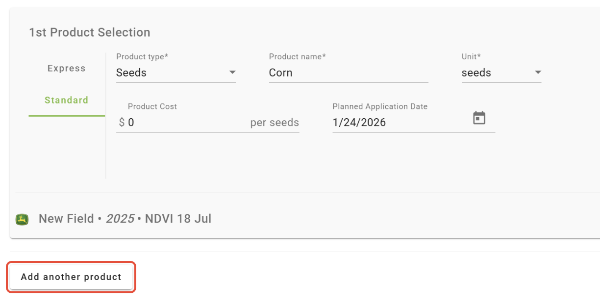 -Click 'Add another product'. (Additional products can be added before or after the creation of layers)