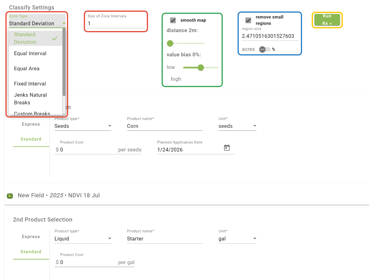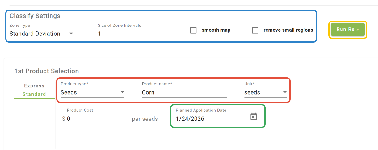 -When the zoning settings have been configured and products have been set, click 'Run Rx'.