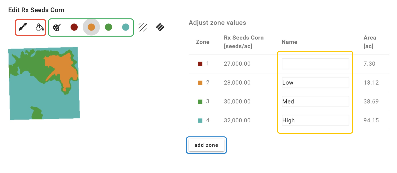 -Click the 'Select color' (palette) button to select a color that corresponds to a zone.