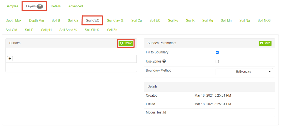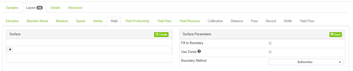 If you would like to create a layer from a partial dataset and do not want the data to be interpolated to the field boundary, uncheck the 'Fill to Boundary' box, click 'Save', then 'Create'.