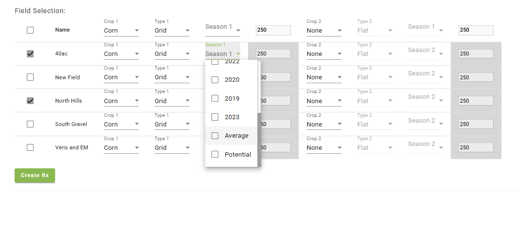 The use of Yield layers within the Add/Edit Formulas tool has been partially covered in this article, but requires more clarification. When a Yield layer is entered within a formula, it references the "Field Selection" portion of the Formula Rx tool. This allows for flexibility when it comes to configuring yield goals. This flexibility allows you to choose between various yield goal types, values, seasons/layers, and lets you configure each field individually. More info on this functionality is contained within the Formula Rx tool article.
