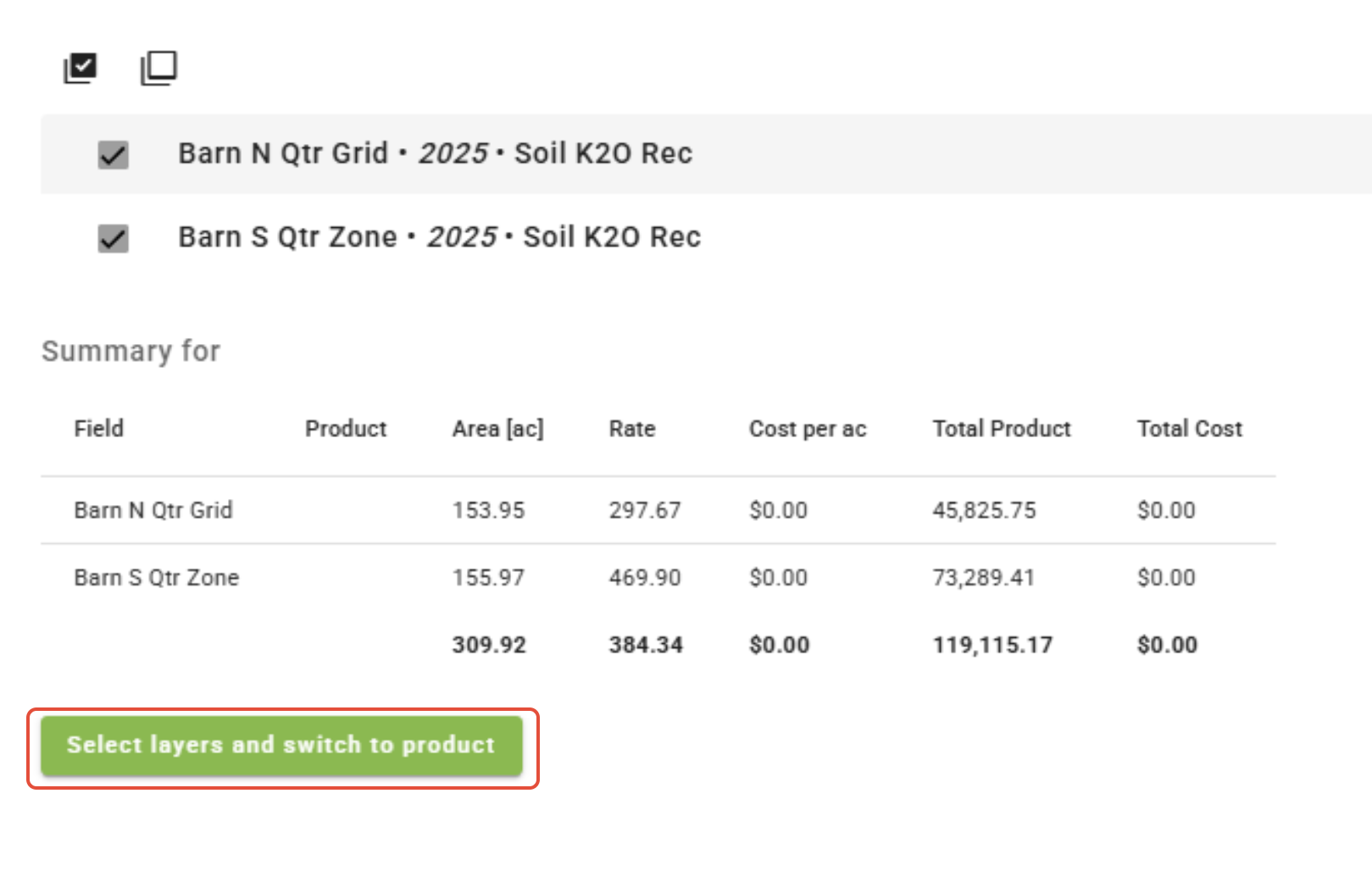 Fill with Zeros - Pertains to credit layers used in the Formula Rx tool. When checked, any blank areas of the credited layers will be filled with zeros so that the layer can be properly credited. This is useful when crediting manure applications.