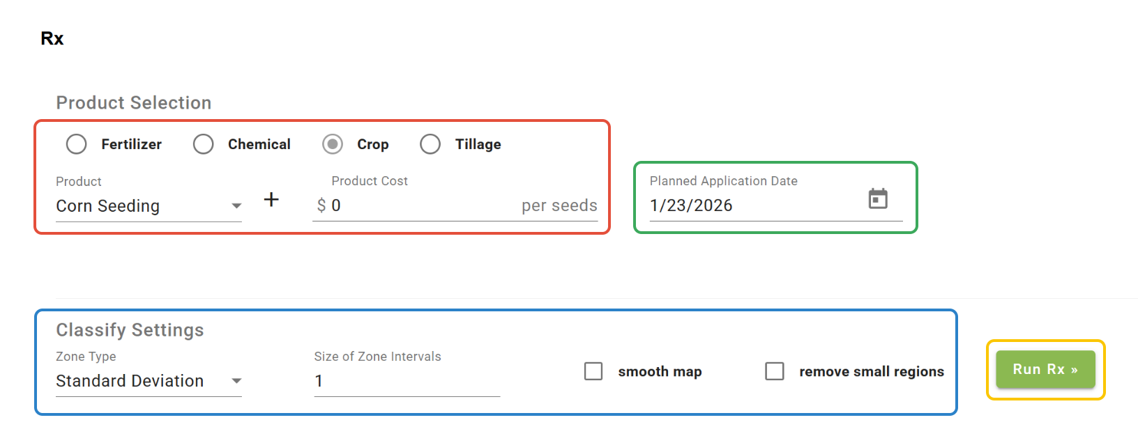 -To overwrite the original layer, choose the same Product and Planned Application Date. To save the edited Rx as a new layer, change the Product or the Planned Application Date.
