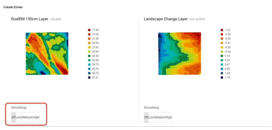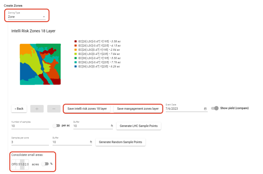 Within the create zones tool, you also have the ability to compare the created zoned layers against yield and/or imagery.