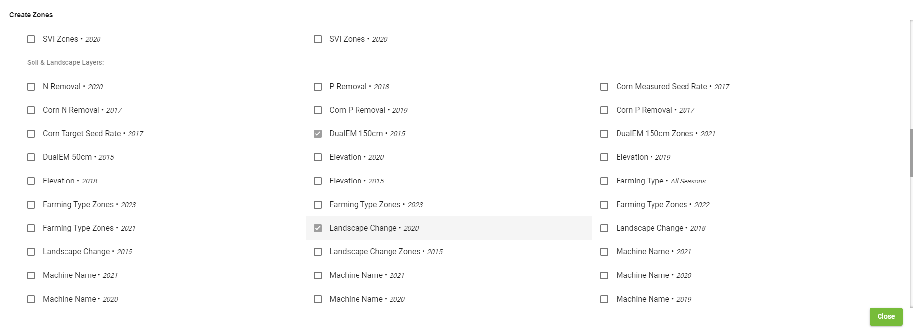 1. Select the desired layer(s) and click 'Create Zones' at the bottom of the page.