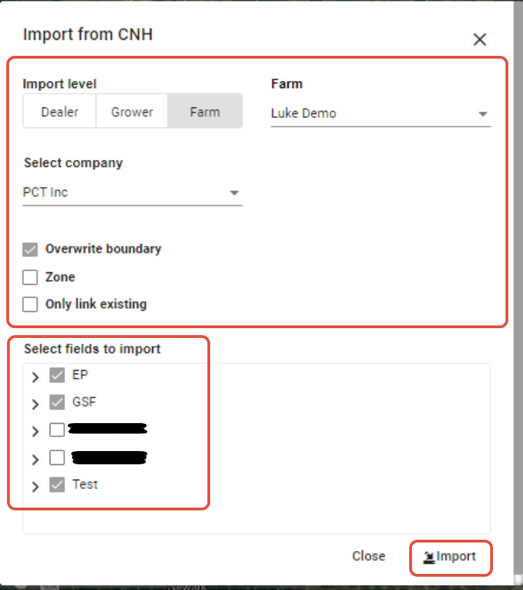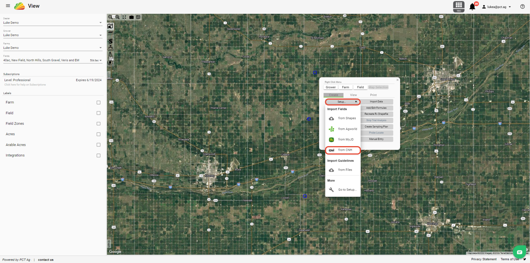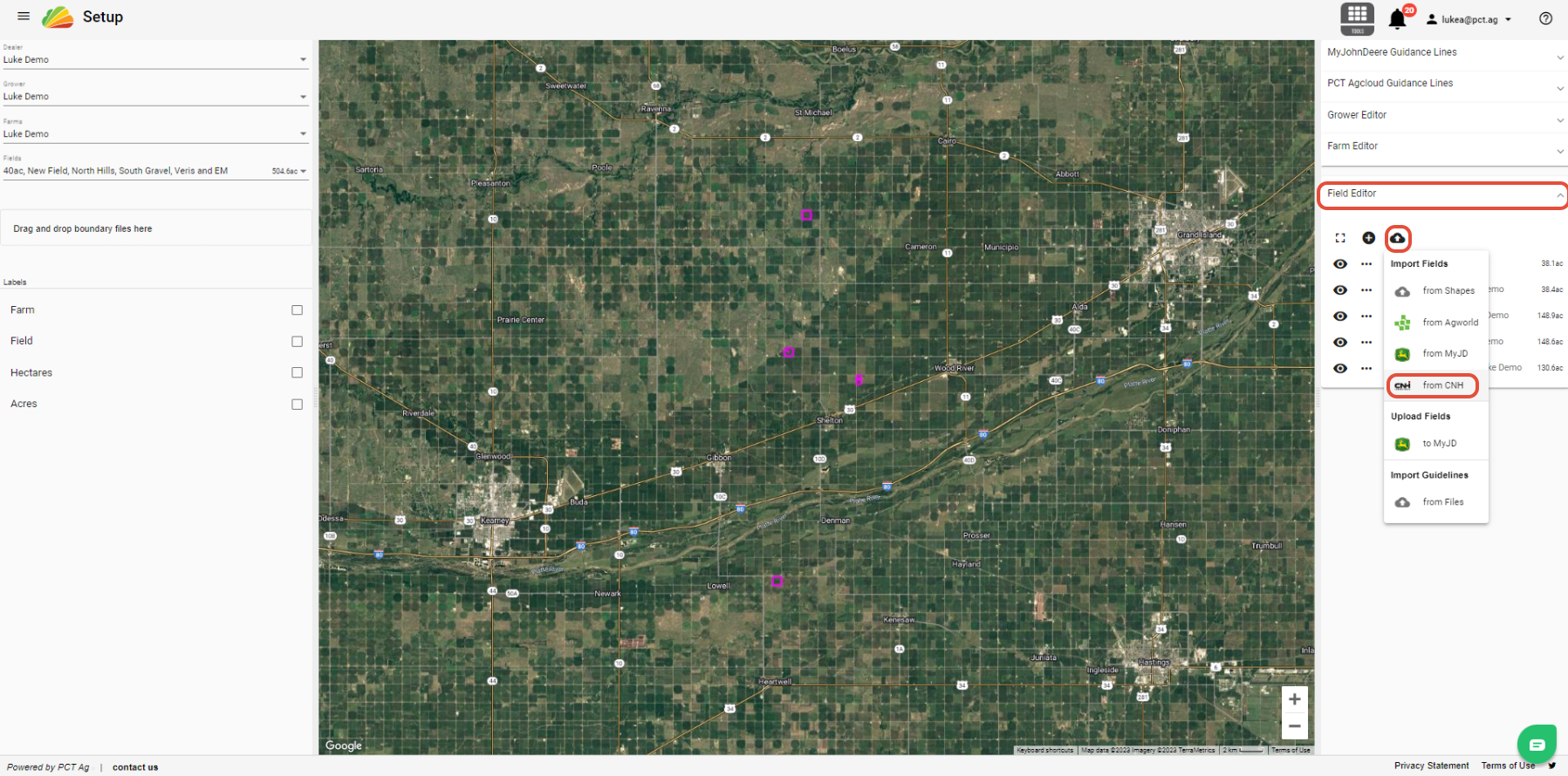 To import Field Boundaries through the PCT and CNH integration, follow the steps below.