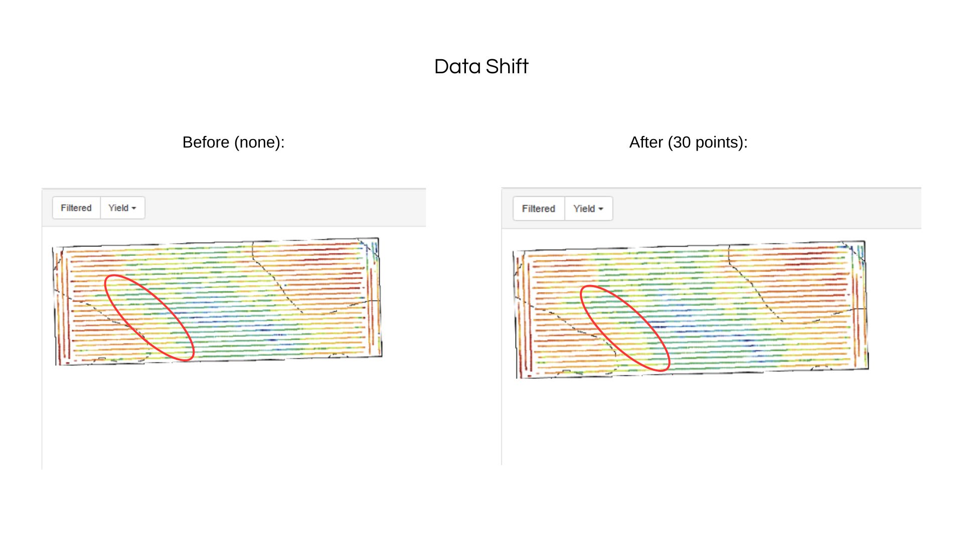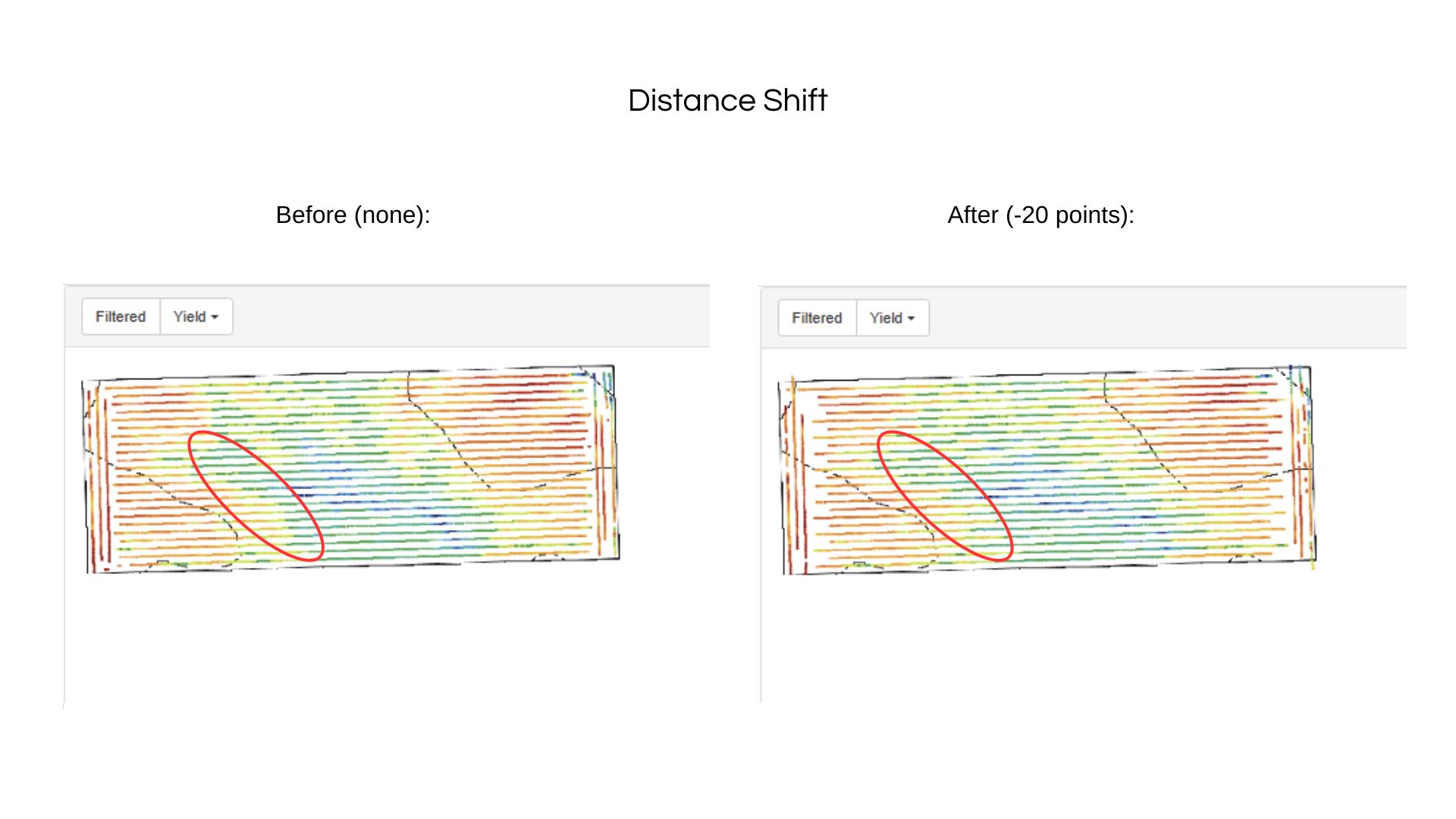 Moves raw data points by a set distance to create new data points (ex. distance from the tractor to the back of a planter). A positive or negative value can be entered.