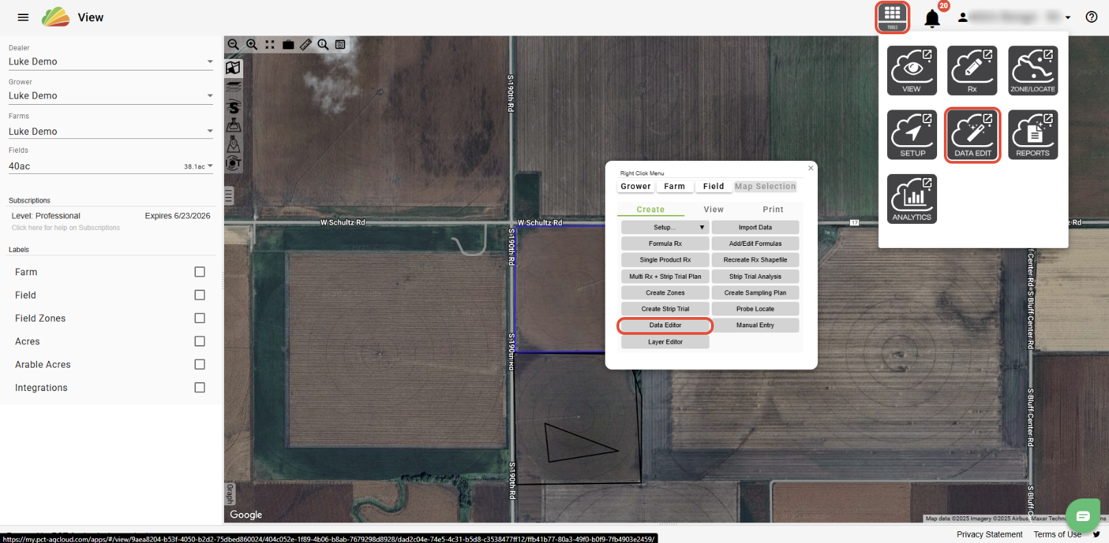 To navigate to Data Editor, select 'Data Editor' from the Right-Click Menu in View or from the 'Tools' menu.