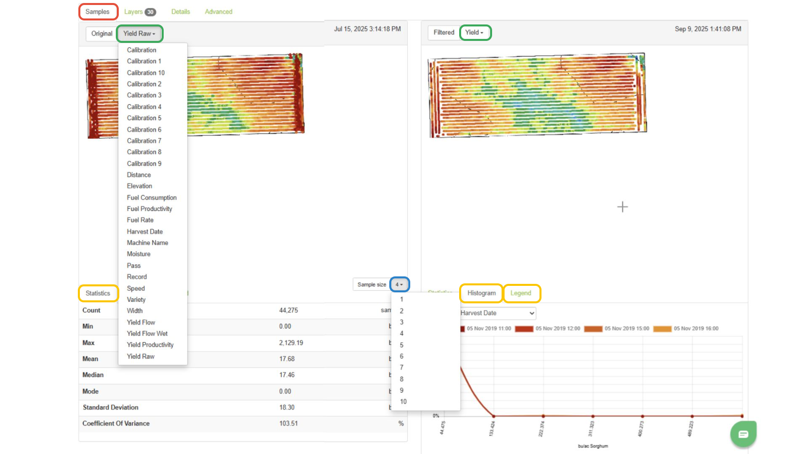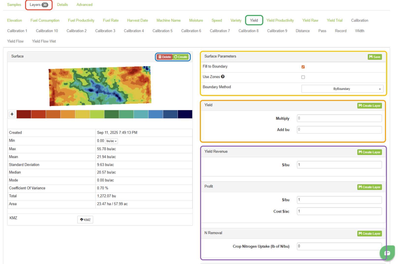 For Yield layers, the totals can be adjusted by multiplying, adding, or subtracting. To edit totals for multiple Yield layers at a time, use the Layer Editor tool. Click HERE to learn more about the Layer Editor tool.