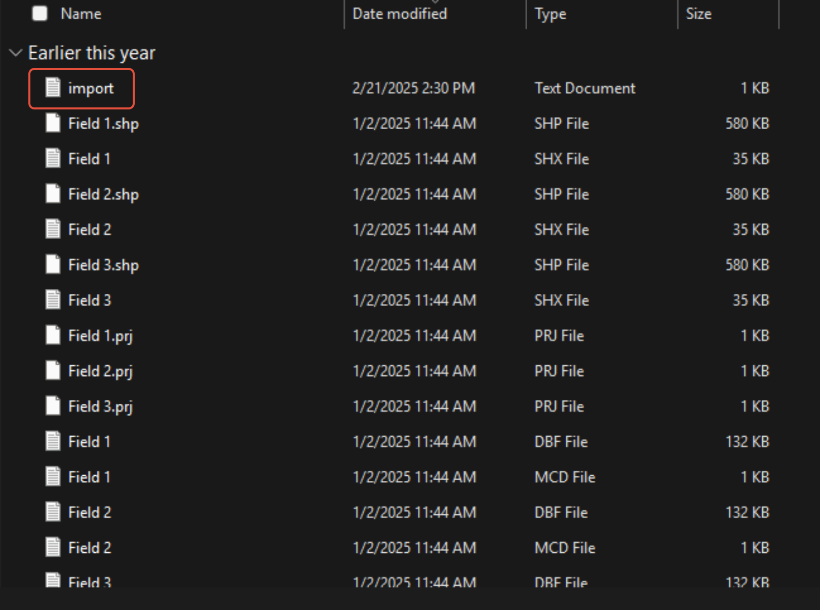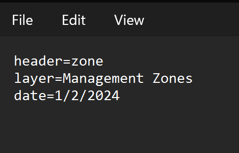 The steps for importing multiple Management Zone layers at a time are the same as above, as long as the headers are consistent across all files. The only exception is that the .txt file within the folder needs to be named "import".