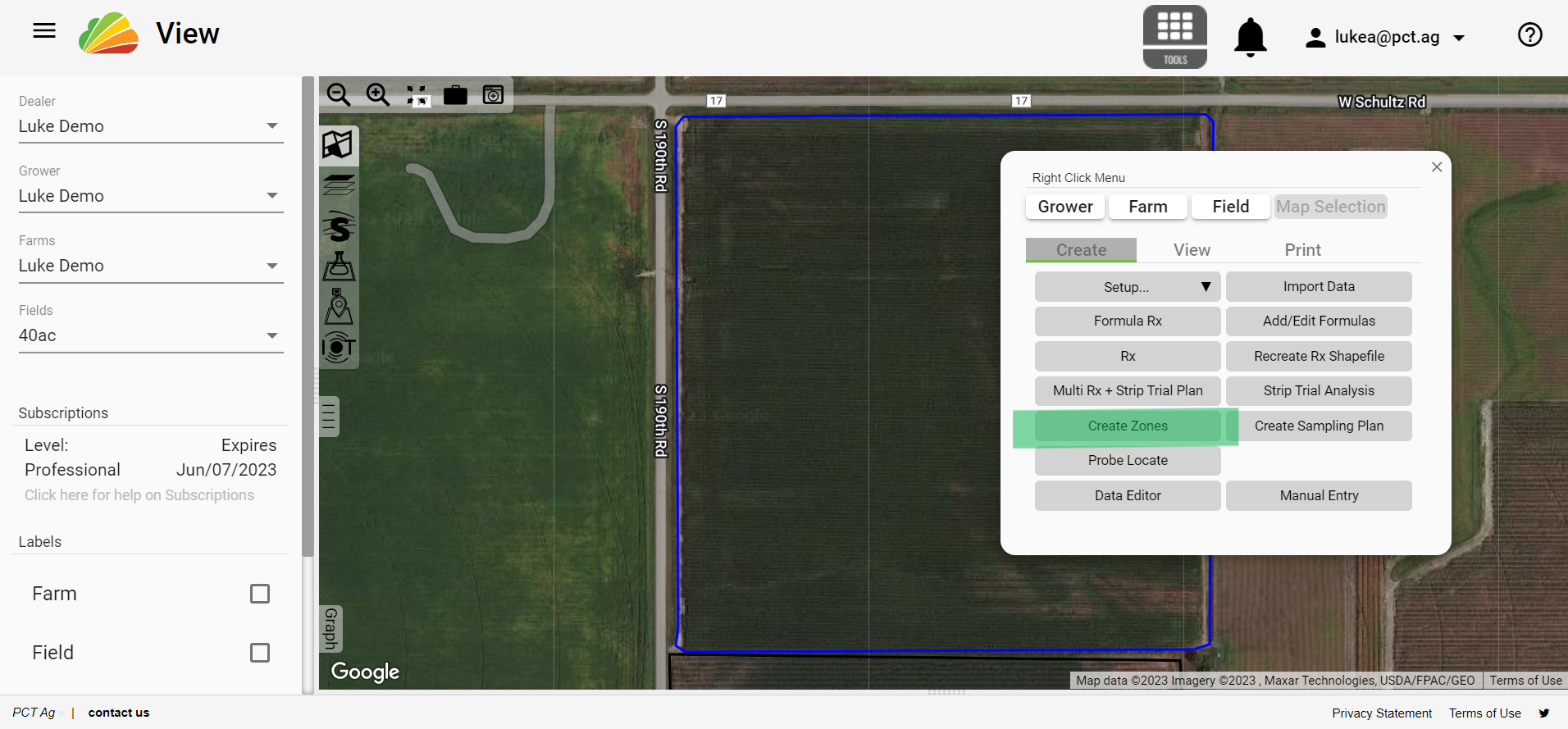 1. Click 'Create Zones' in the Right-Click Menu in View.