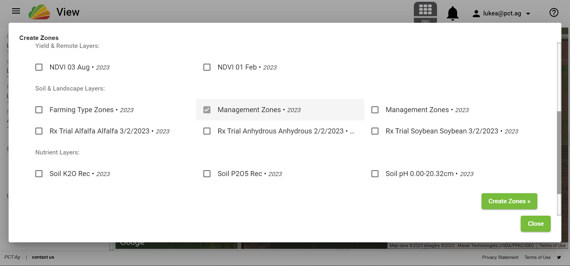 2. Select the desired layer and click 'Create Zones' at the bottom of the window.