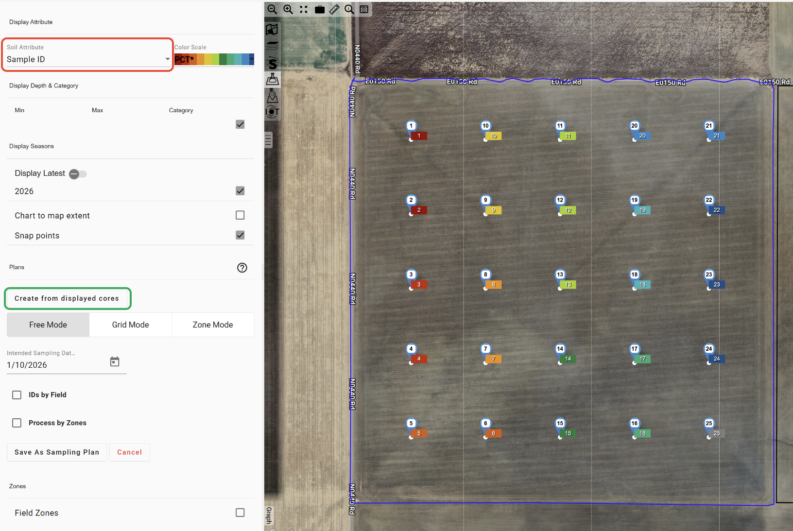 If existing Sample IDs are saved for the field, either from imported points or a previous Sample Plan, they can be used to create a new plan.