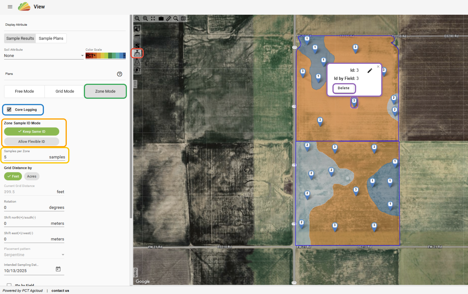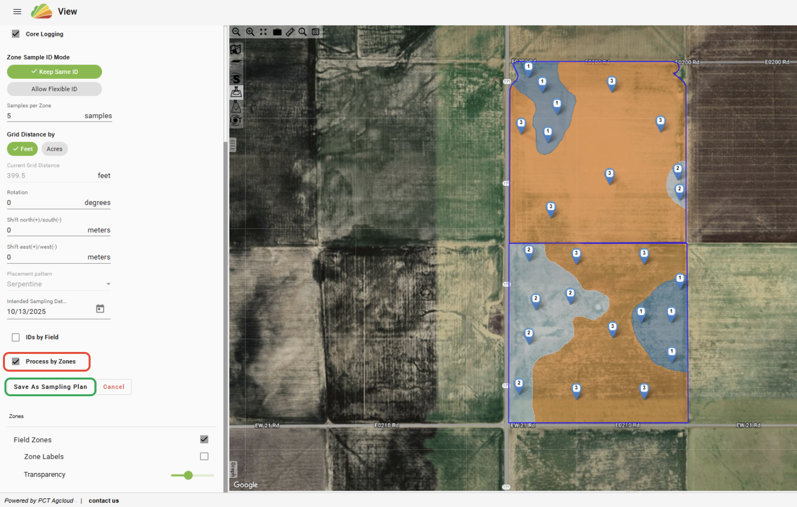 In the sample planner within PCT Agcloud, you now have the option to plan individual core sites to create a zone composite sample plan. See the steps below on how to do this.