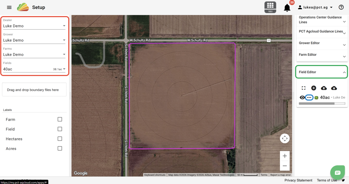 1. In the Setup tool, select the Farm(s) and Field(s) that you would like to work on.