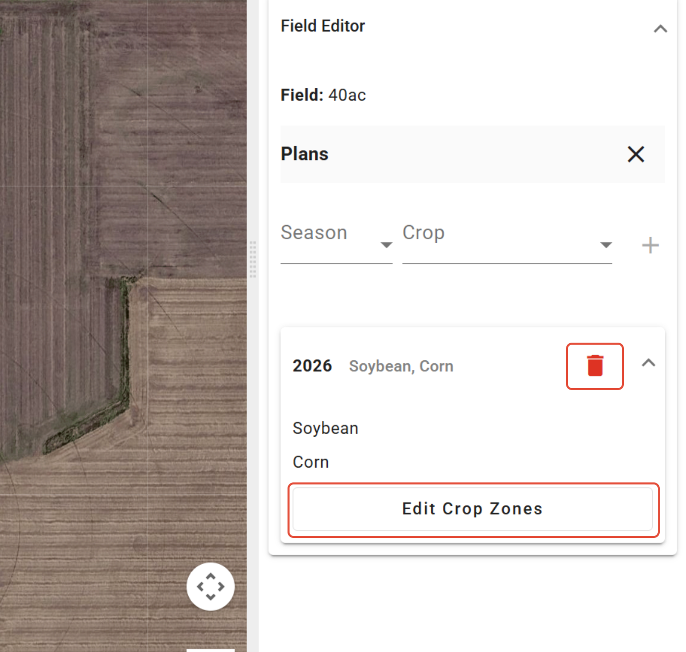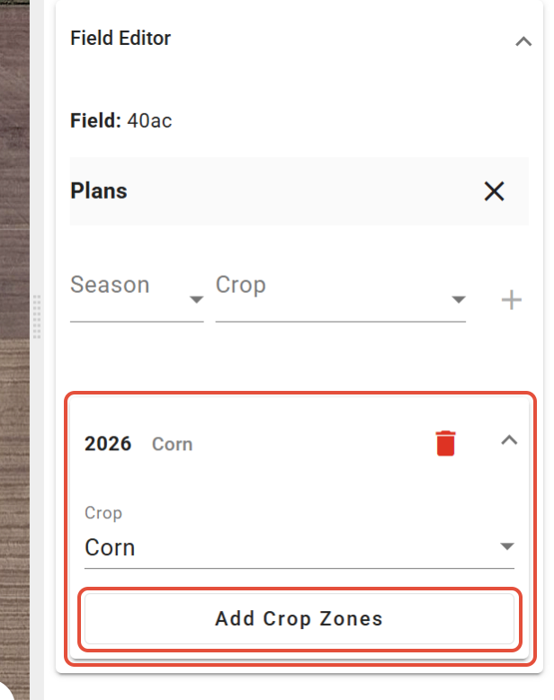 7. Once the Season and Crop have been added, the Season Plan can be opened edited and Crop Zones can be added by clicking 'Add Crop Zones'.