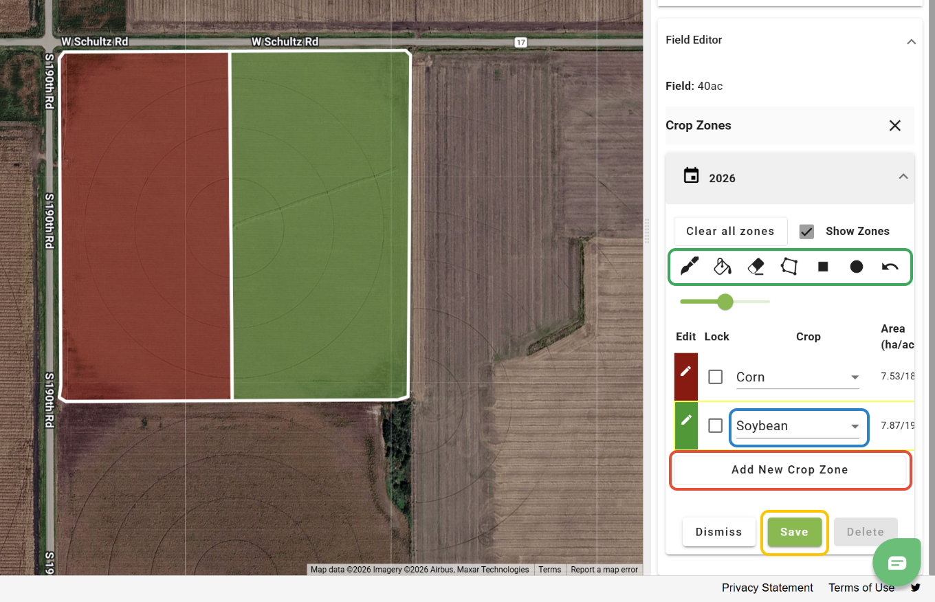 8. To add additional crops, click the 'Add New Crop Zone' button.
